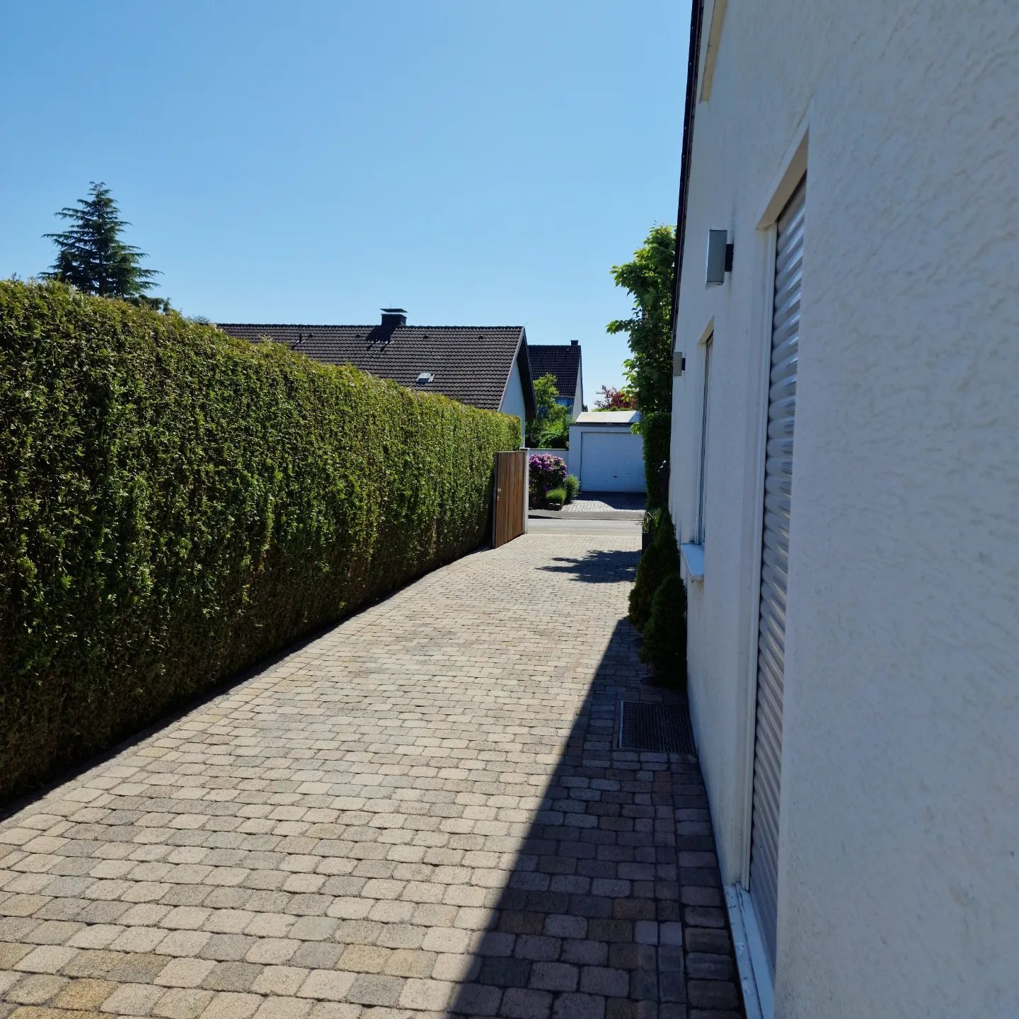 Um die frisch gereinigten Flächen dauerhaft zu schützen, tragen wir eine hochwertige Imprägnierung auf. Diese macht die Steine wasser- und schmutzabweisend, reduziert erneute Moosbildung und verlängert die Lebensdauer Ihrer Flächen.